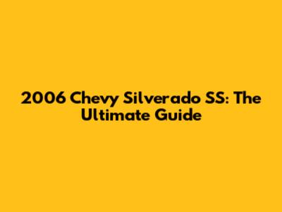 2006 Chevy Silverado SS: The Ultimate Guide