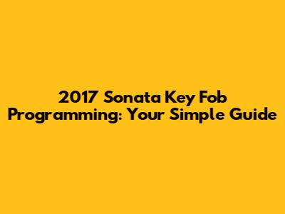 2017 Sonata Key Fob Programming: Easy Guide