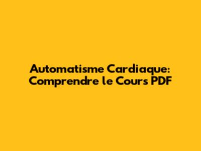 Automatisme Cardiaque: Comprendre Le Cours PDF