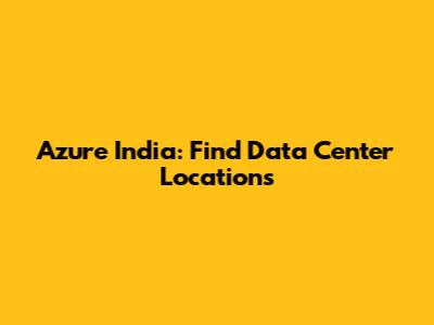 Okay, so where exactly are these Azure data centers in India? As of my last update, Azure has three main regions in India: