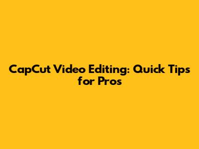 CapCut Video Editing: Quick Tips For Pros
