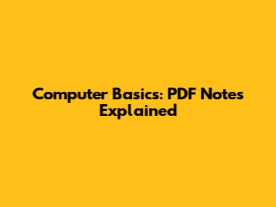 Computer Basics: PDF Notes Explained