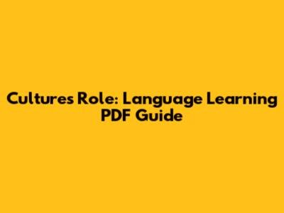 Culture's Role: Language Learning PDF Guide