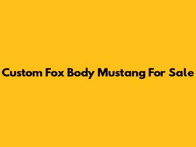 Custom Fox Body Mustang For Sale: Find Your Dream Ride