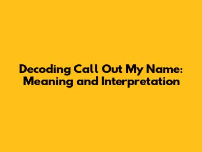 Decoding 'Call Out My Name': Meaning And Interpretation
