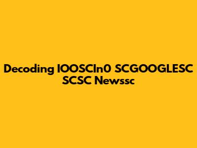 Decoding IOOSCIn0 SCGOOGLESC SCSC Newssc