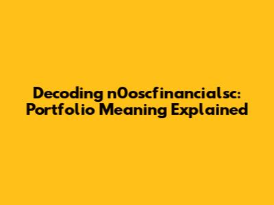 Decoding N0oscfinancialsc: Portfolio Meaning Explained