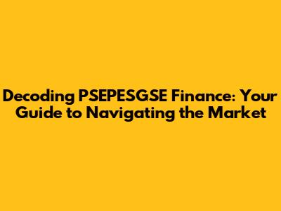 Decoding PSEPESGSE Finance: Your Guide To Navigating The Market