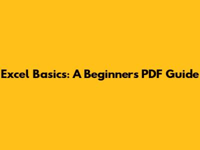 Excel Basics: A Beginner's PDF Guide