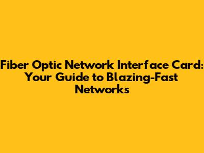 Fiber Optic NIC: Demystifying Your Network's Speedster