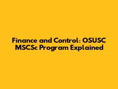 Finance And Control: OSUSC MSCSc Program Explained