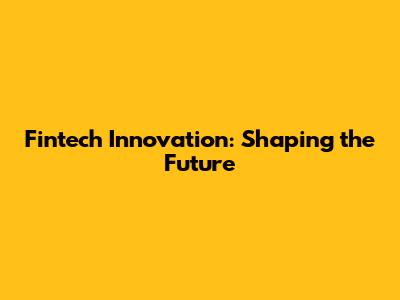 Fintech Innovation: Shaping The Future
