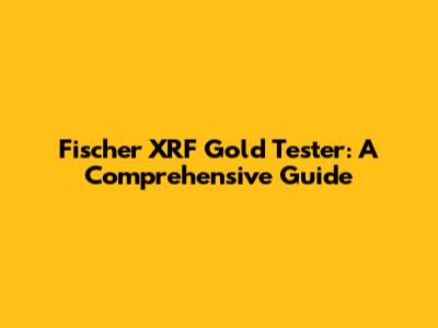 Fischer XRF Gold Tester: Ultimate Guide