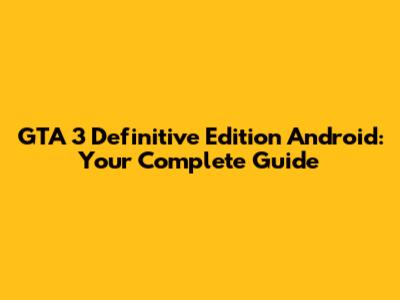 GTA 3 Definitive Edition: Android's Ultimate Guide