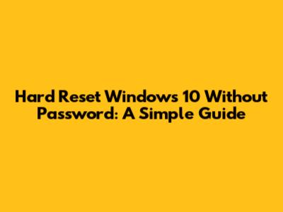 Hard Reset Windows 10 Without Password: A Simple Guide