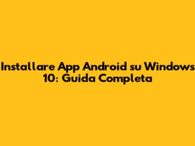 Installare App Android Su Windows 10: Guida Completa