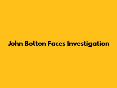 John Bolton Faces Investigation