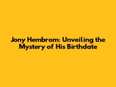 Jony Hembrom: Unveiling The Mystery Of His Birthdate