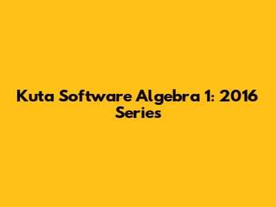Kuta Software Algebra 1: 2016 Series