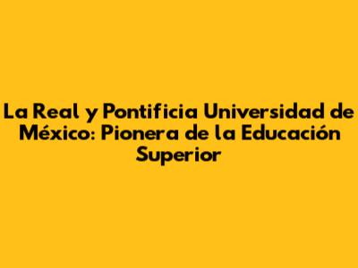 La Real Y Pontificia Universidad De México: Pionera De La Educación Superior