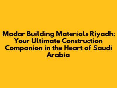 Madar Building Materials: Your Riyadh Construction Partner
