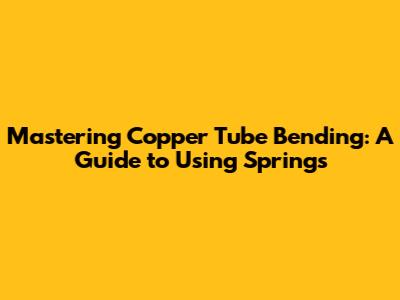 Mastering Copper Tube Bending: A Guide To Using Springs