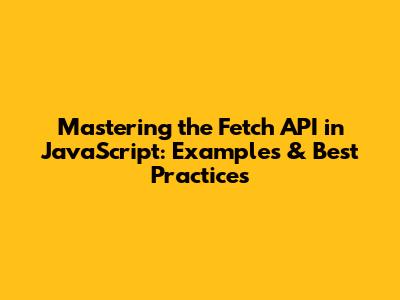Mastering The Fetch API In JavaScript: Examples & Best Practices