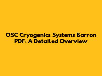 OSC Cryogenics Systems Barron PDF: A Detailed Overview