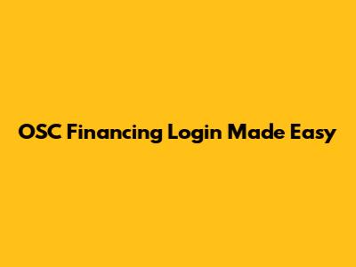 OSC Financing Login Made Easy