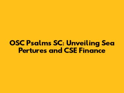 OSC Psalm's SC: Navigating Sea Pertures And CSE Finance