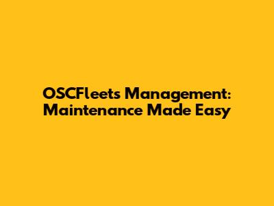 OSCFleets Management: Maintenance Made Easy