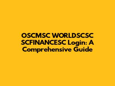 OSCMSC WORLDSCSC SCFINANCESC Login: A Comprehensive Guide