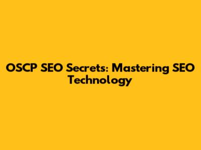 OSCP SEO Secrets: Mastering SEO Technology