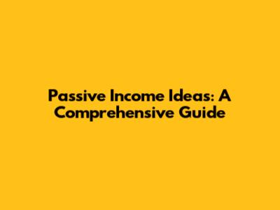 Passive Income Ideas: A Comprehensive Guide