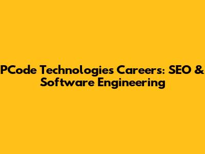 PCode Technologies Careers: SEO & Software Engineering