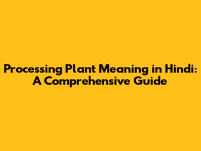 Processing Plant Meaning In Hindi: A Comprehensive Guide