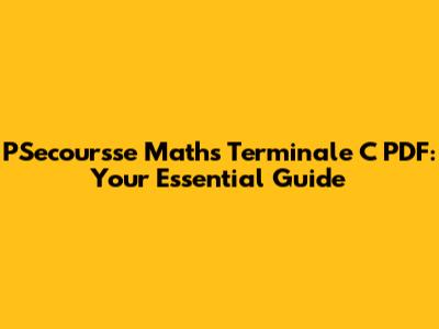 PSecoursse Maths Terminale C PDF: Your Essential Guide