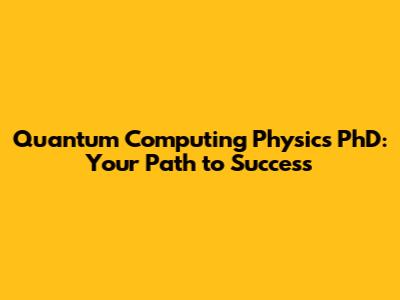 Quantum Computing Physics PhD: Your Path To Success