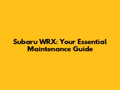 Subaru WRX: Your Essential Maintenance Guide
