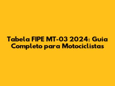 Tabela FIPE MT-03 2024: Preços E Informações Detalhadas