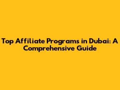 Top Affiliate Programs In Dubai: A Comprehensive Guide