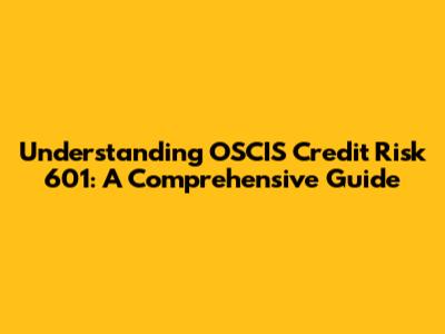 Understanding OSCIS Credit Risk 601: A Comprehensive Guide