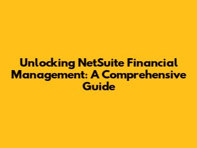 Unlocking NetSuite Financial Management: A Comprehensive Guide