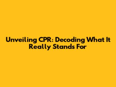 Unveiling CPR: Decoding What It Really Stands For