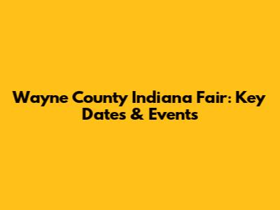 Wayne County Indiana Fair: Key Dates & Events